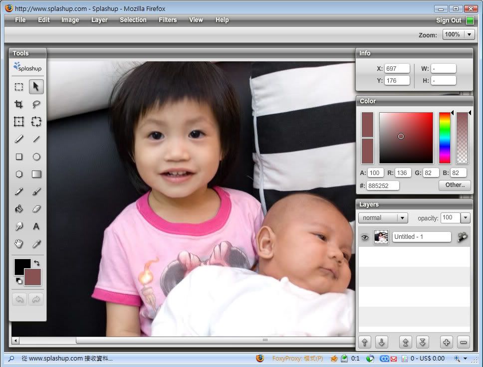 在Adobe推出Photoshop Express把我們嚇死之前,仍然有不少Web-based的線上影像編輯器陸續推出,其中Splashup看起來很對胃口,採用全Flash介面,完全模擬桌面軟體的功能與體驗,提供如縮圖、裁切與其他基本特效如清晰、模糊等等,而且也有一些看起來很酷的色彩調整功能,甚至還提供圖層(layer)的功能。